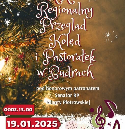 Miło nam poinformować, że tegoroczny XXIII Regionalny Przegląd Kolęd i Pastorałek w Budrach odbędzie się pod honorowym patronatem Senator RP Jolanty Piotrowskiej. Zapraszamy do zgłoszeń! Regulamin dostępny do pobrania na stronie GOK Budry