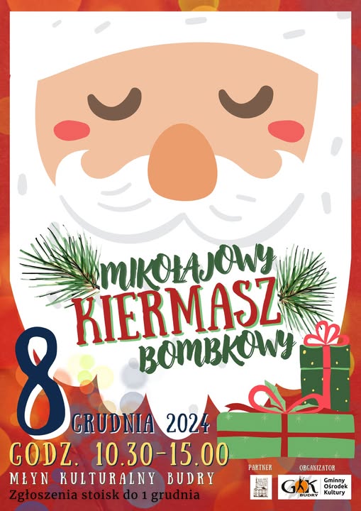 Zapraszamy wystawców rękodzieła i produktów lokalnych do zgłoszeń na tegoroczny kiermasz. Regulamin do pobrania na stronie https://gokbudry.pl/mikolajowy-kiermasz-bombkowy-2024/