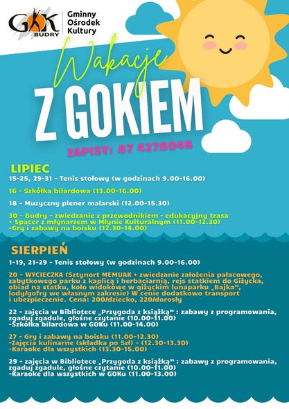 😊 Do zobaczenia w GOKu!🥰Zapisy na poszczególne dni zajęć oraz wycieczkę pod tel. GOK: 87 4278048
