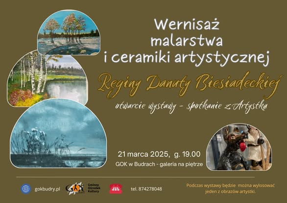 Zapraszamy Państwa na wernisaż prac artystki z Giżycka Reginy Danuty Biesiadeckiej, która łączy pasję tworzenia ceramiki artystycznej i malarstwa.