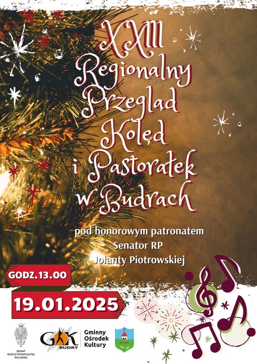 Miło nam poinformować, że tegoroczny XXIII Regionalny Przegląd Kolęd i Pastorałek w Budrach odbędzie się pod honorowym patronatem Senator RP Jolanty Piotrowskiej. Zapraszamy do zgłoszeń!